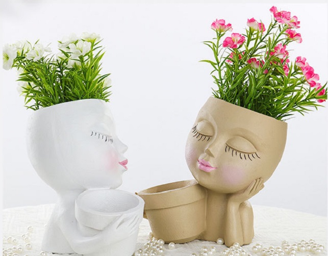 Odysite Head Flower Pot Face Planter Double Flower Pots In One For Indoor Outdoor Plants Resin Head Planter With Drainage Hole Cute Lady Face Plant Pots Brown Walmart Com